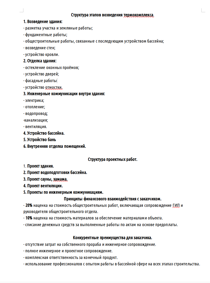 Строительство коммерческих акватермальных комплексов с площадью здания до 1500 кв.м.